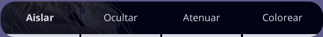 - OCULTAR / OCULTAR OTROS: oculta el órgano seleccionado. Si se seleccionan varios órganos, los órganos no seleccionados se ocultan.